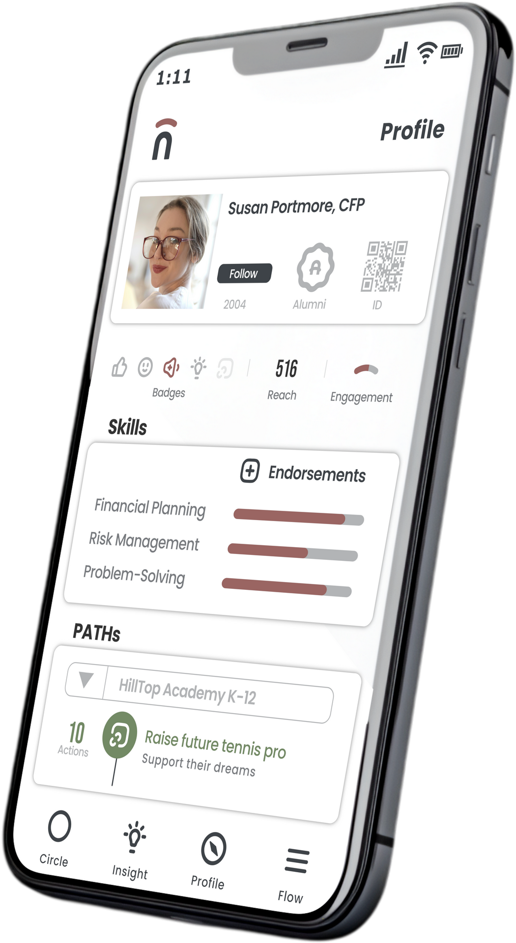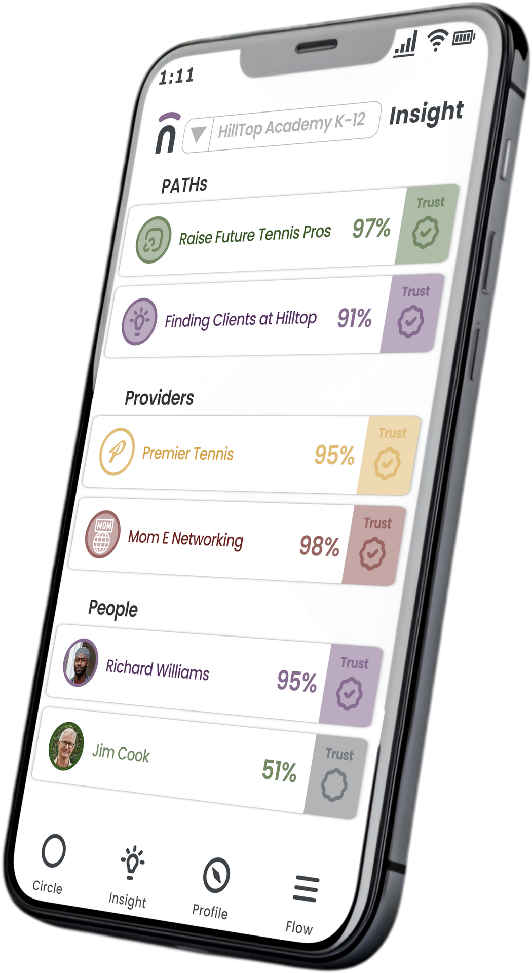 Privately define your goals, skills, and limits for each group. Our system monitors your circle to find the people, posts, and providers aligned with your success.